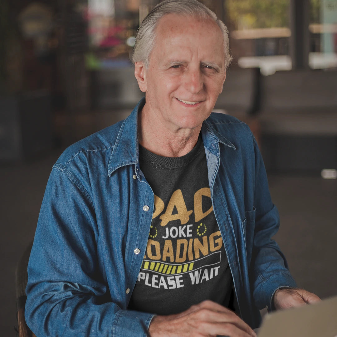 Look no further for a playful shirt that brings everyone's inner dad jokes to the surface- Shop Wrenée™'s Dad Joke Loading T-shirt has arrived! Made of 100% ringspun cotton, this T-shirt is smooth, breathable, and comfortable. The graphic on the black or navy variation is a witty touch that will brighten up your daily routine or social occasions. The Dark Heather alternative, consisting of 65% polyester and 35% cotton, offers an excellent stretch for unrestricted movement. Get ready to stir up some laughter with this shirt from Shop Wrenée™!