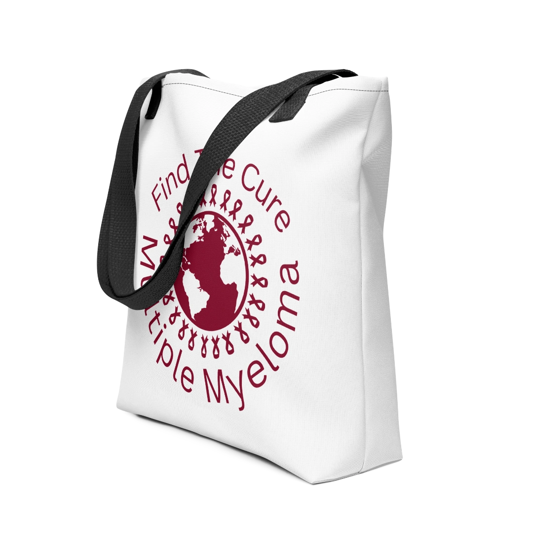 Join us in the fight against Multiple Myeloma with our Find The Cure tote bag! Featuring a spacious 15x15 size, this tote has a 2.6 US gal capacity that can hold up to 44lbs. It's designed with dual handles, made from 100% natural cotton bull denim, with a handle length of 11.8" and a width of 1". Carry it around town while showcasing your support for this important cause.