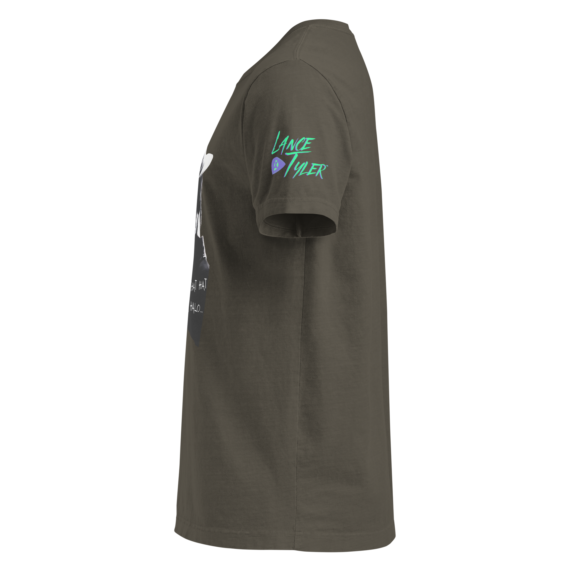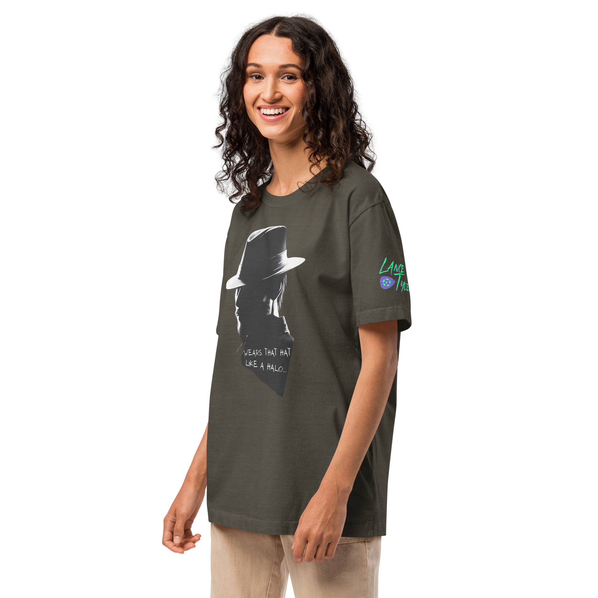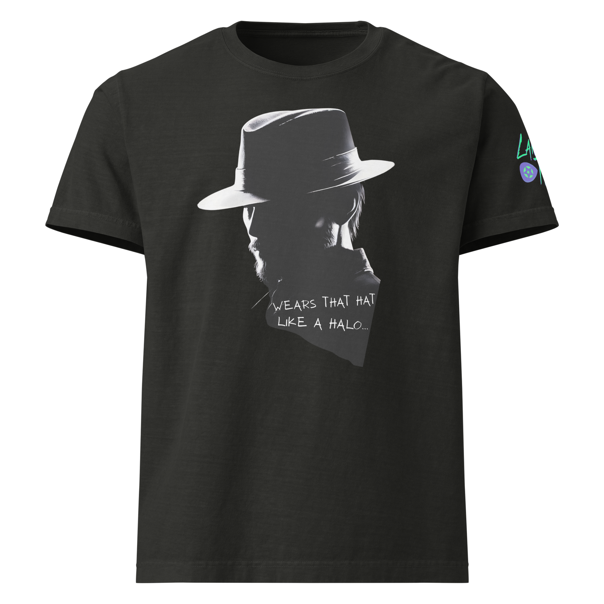 Introducing the Lance Tyler™ "Hat Like A Halo" Oversized Tee! Available exclusively here at Shop Wrenée™, this unisex heavyweight oversized tee nails that laid-back streetwear look. The design features a custom graphic of the musician wearing his signature fedora along with a memorable lyric from the artist, and his name on the left sleeve! Made from 100% cotton, it’s soft, structured, and perfect for layering or wearing solo. With a vintage-washed vibe, it’s made to stand out without trying too hard.