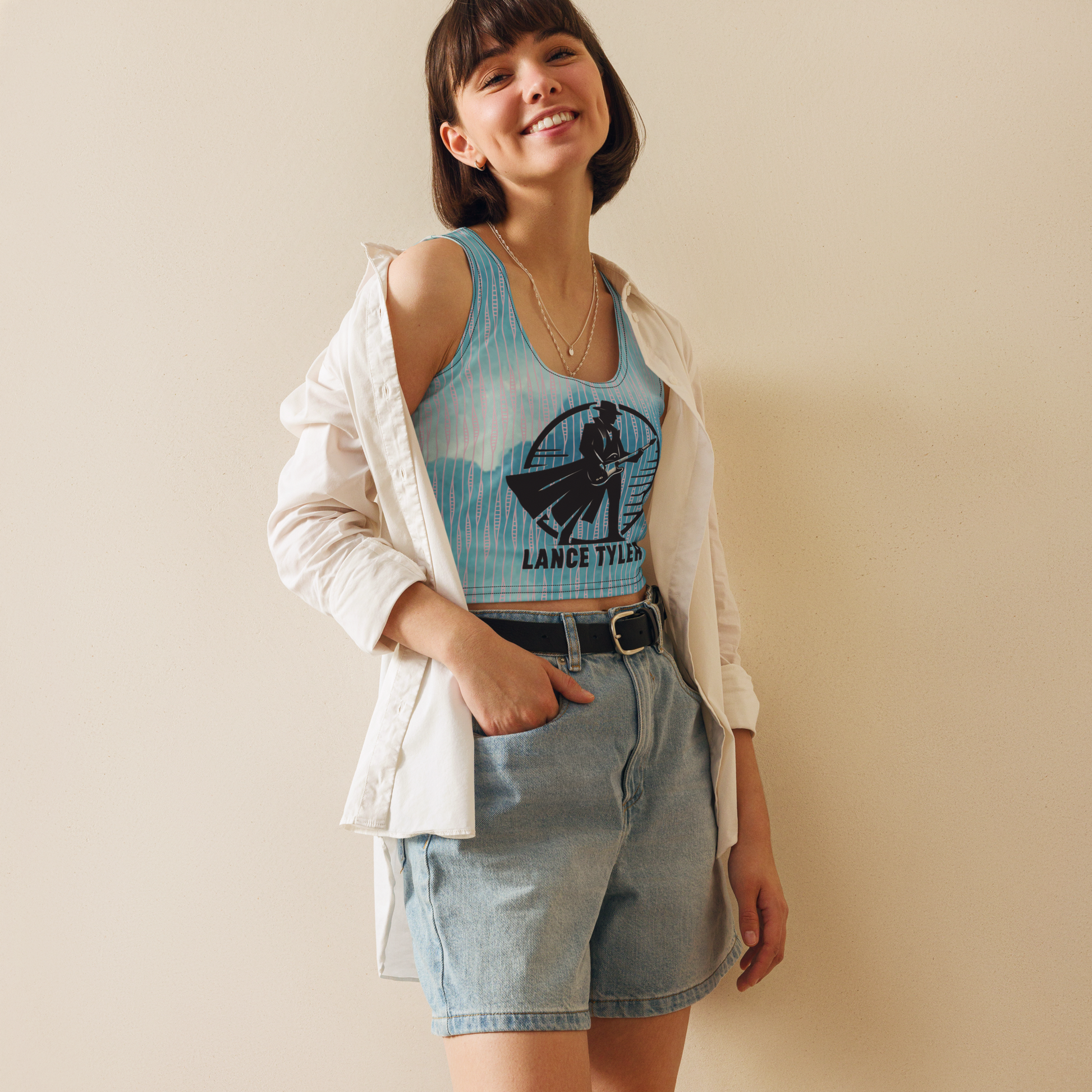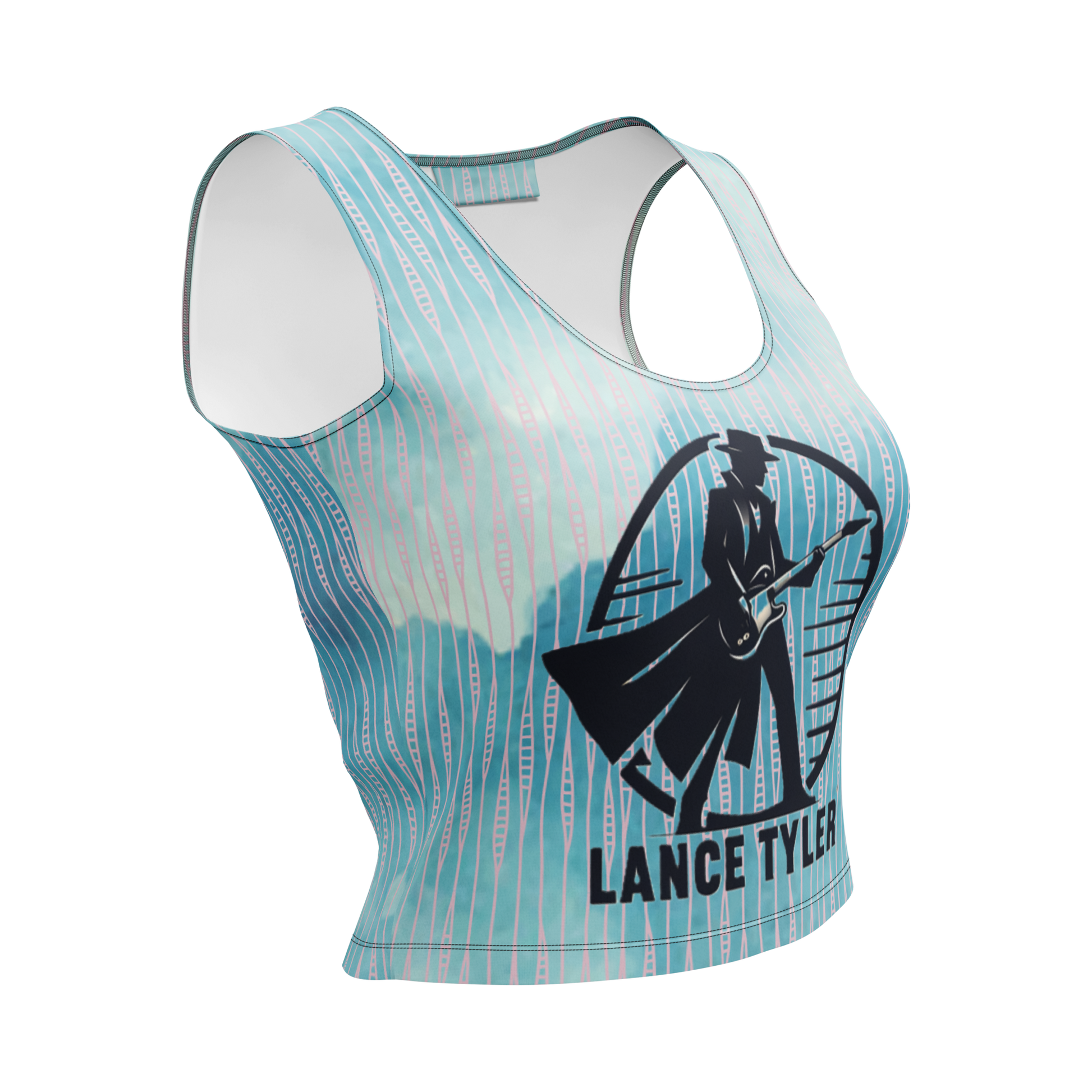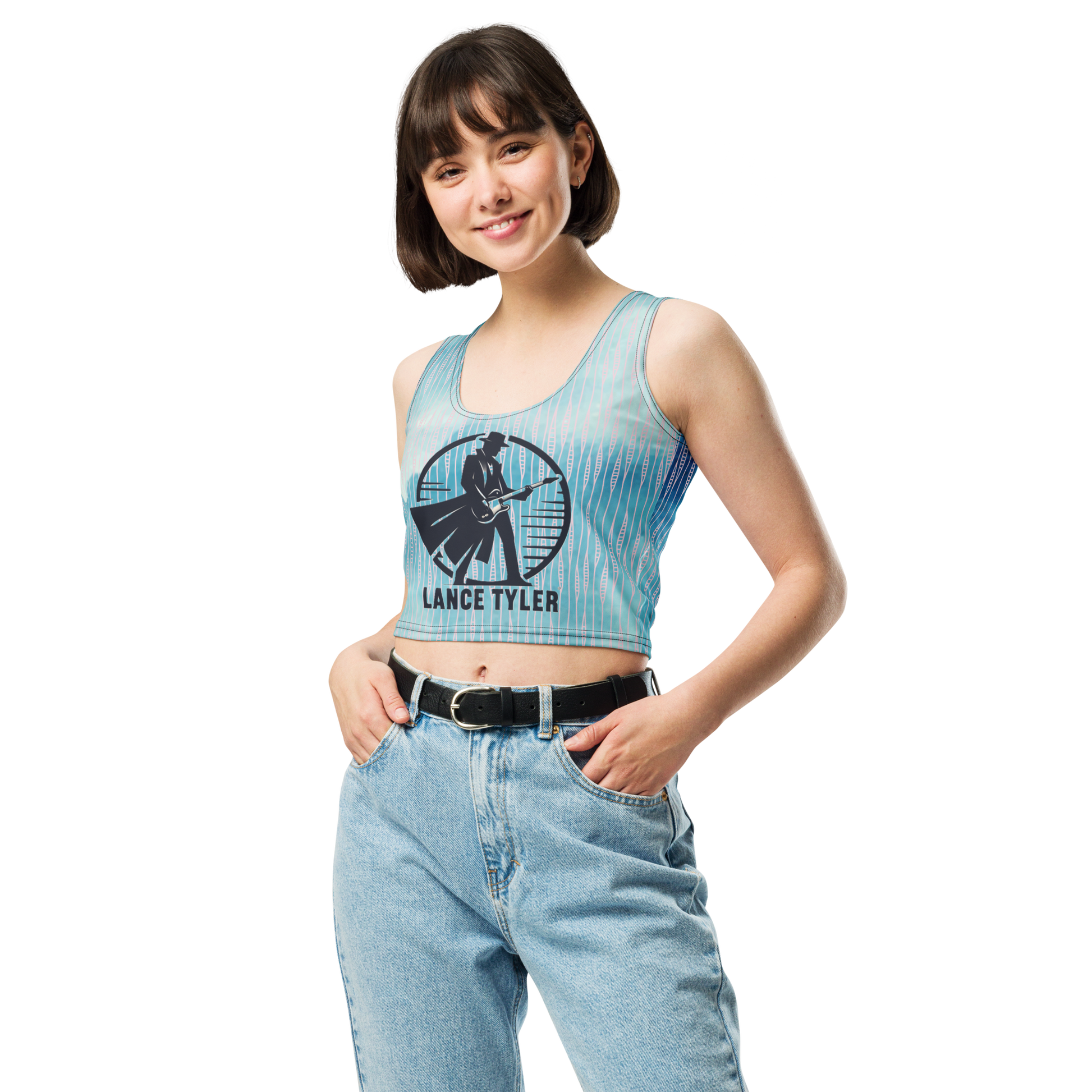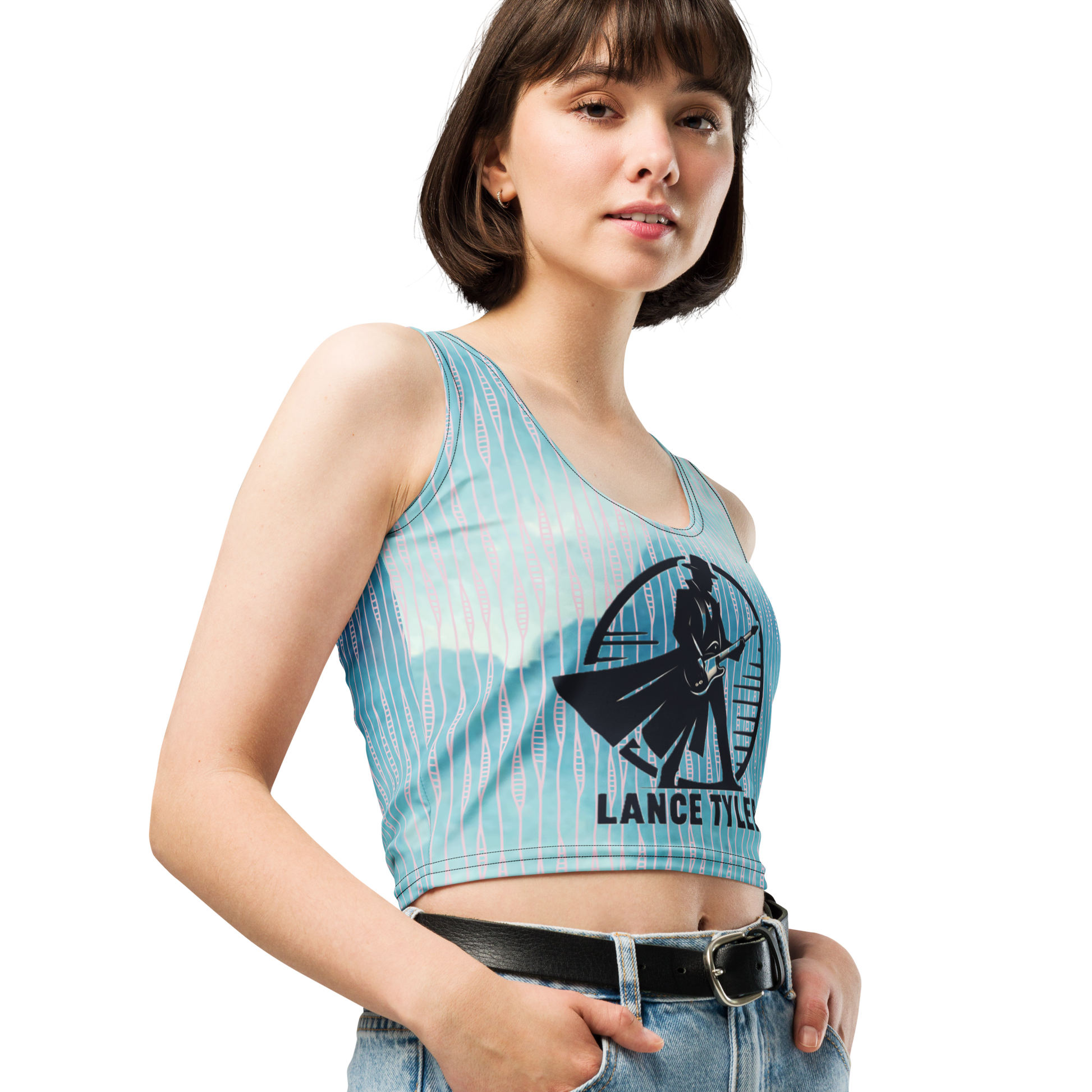Get ready to turn heads and make a statement in this Lance Tyler™ Women's Crop Top from Shop Wrenée™. With its body-hugging fit, eye-catching custom graphic and blue pattern, this crop top is the perfect way to show off your love for Lance in style. The four-way stretch fabric ensures a comfortable and flattering fit that will have you feeling confident and fabulous all day long.