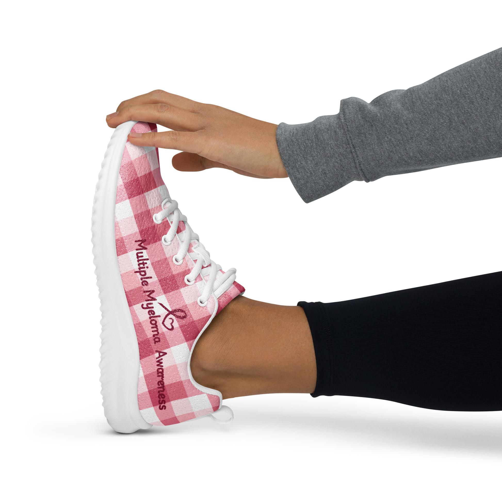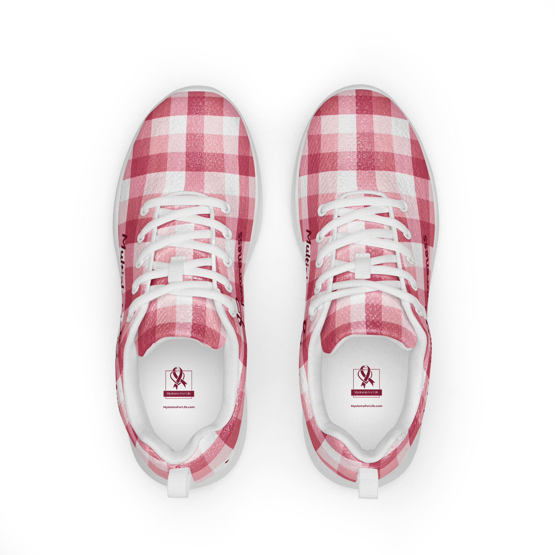 Strut your stuff in style with our Plaid MM Awareness Athletic Shoes! These kicks are not only fashion-forward, but they are also super comfy with their soft insole and padded collar. The lightweight polyester flyknit material makes them perfect for a casual day out or a quick sprint around the block. And the best part? All profits go to Myeloma Organizations, so you can look good and do good at the same time!