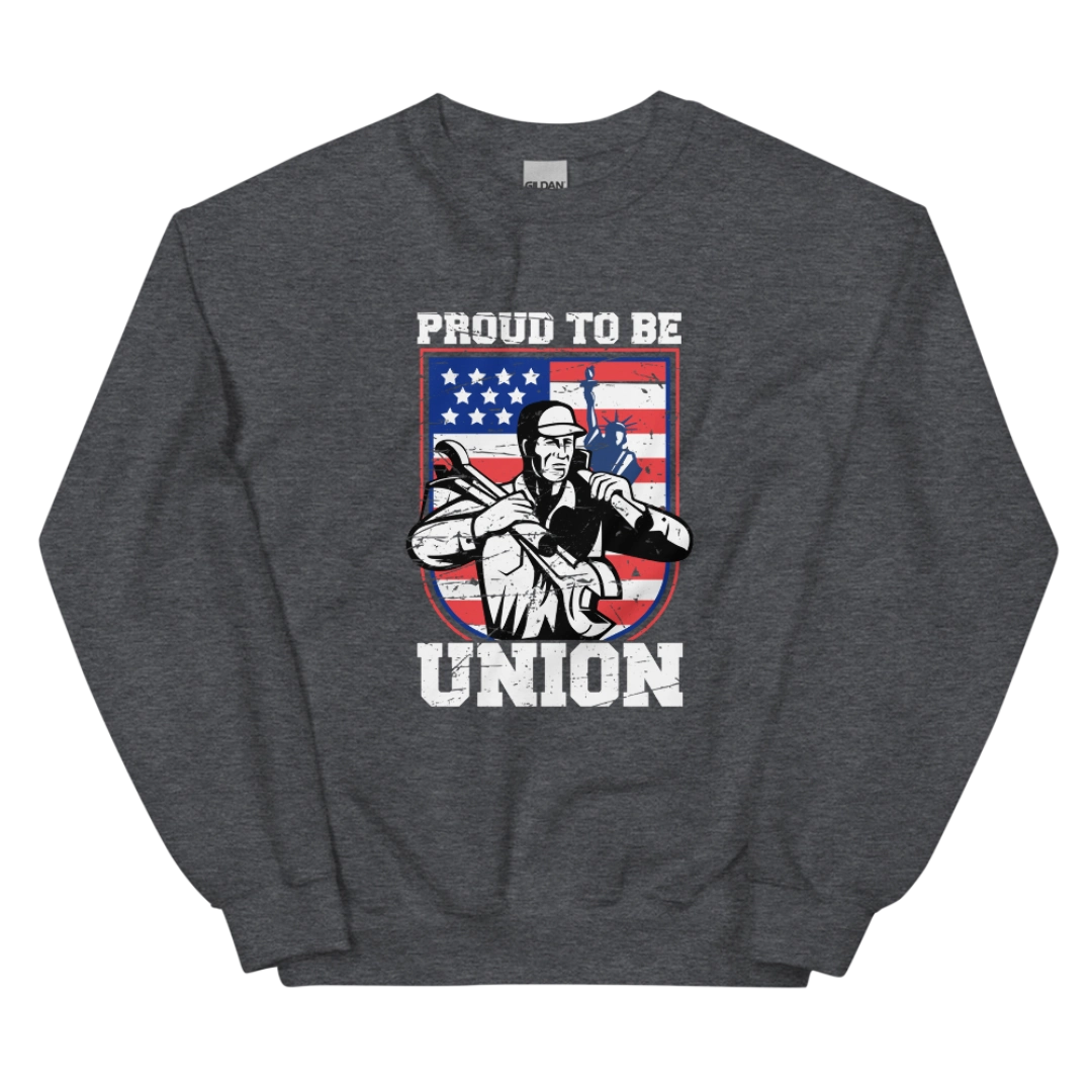 Introducing the Proud To Be Union Crewneck sweatshirt by Shop Wrenée™! This classic fit sweatshirt is made from a blend of 50% cotton and 50% polyester, ensuring comfortable and durable wear. The pre-shrunk fabric guarantees a perfect fit wash after wash. With its 1x1 athletic rib knit collar and spandex, it offers maximum flexibility and style. The air-jet spun yarn provides a soft feel and less pilling, while the double-needle stitching ensures long-lasting quality. Wear your union pride with confidence in this versatile and must-have sweatshirt!