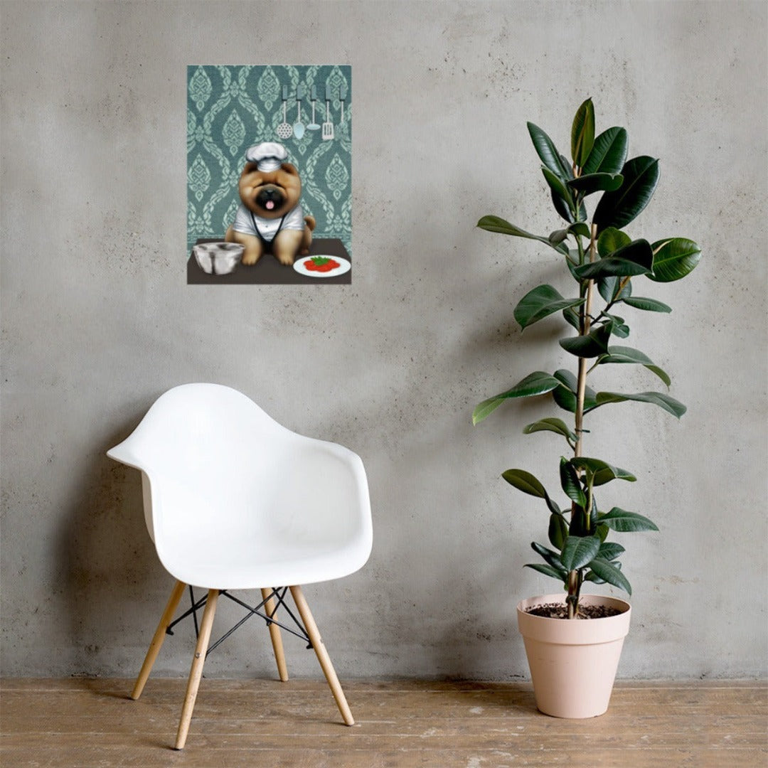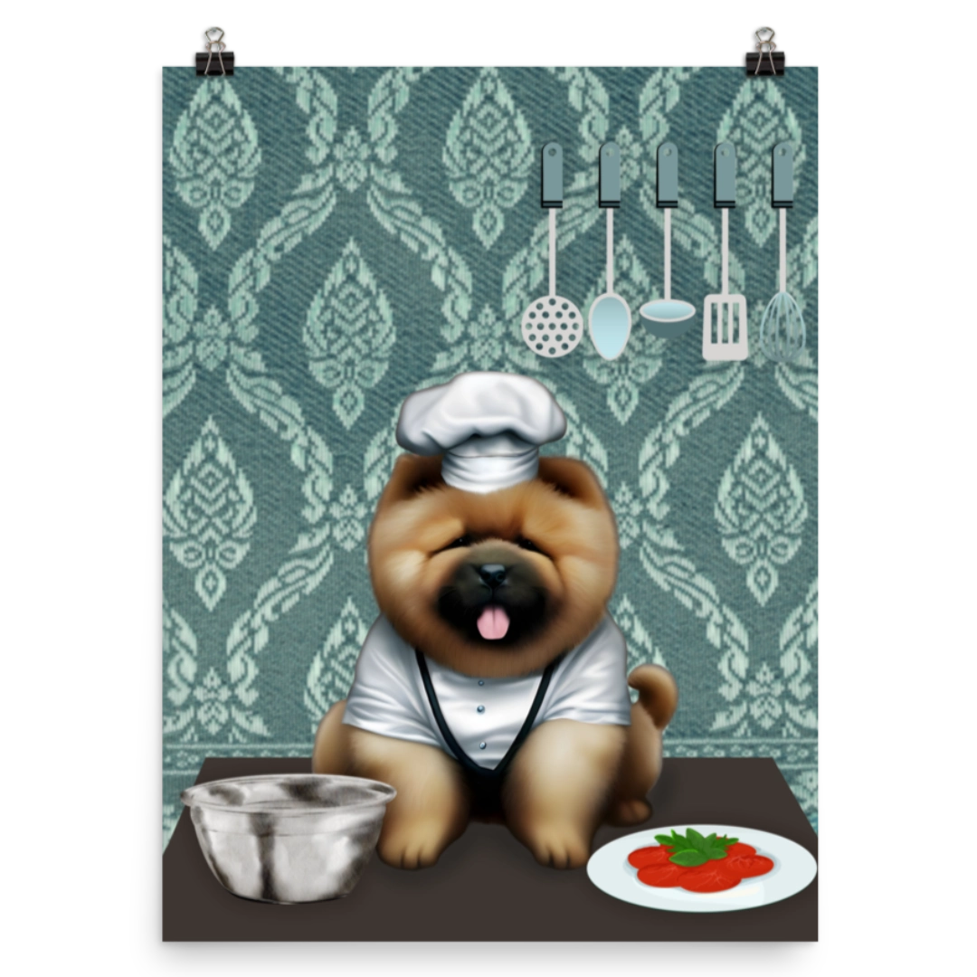 Looking for a way to add some canine charm to your home decor? Look no further than the Pup Chef: Chow Chow Premium Poster from Shop Wrenée™. This 18" x 24" collectible art piece is part of the popular Pup Chef series and showcases a striking portrait of the Chow Chow. The partly glossy, partly matte finish gives it a touch of sophistication, and the fingerprint-resistant surface means it will look great no matter where you display it. A must-have for any dog lover's collection!