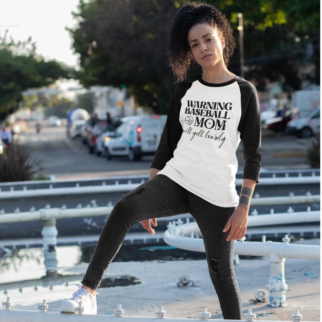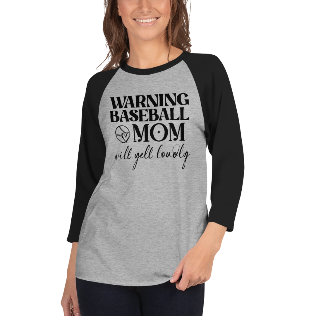 Warning Baseball Mom Will Yell Loudly 3/4 Sleeve Raglan Shirt