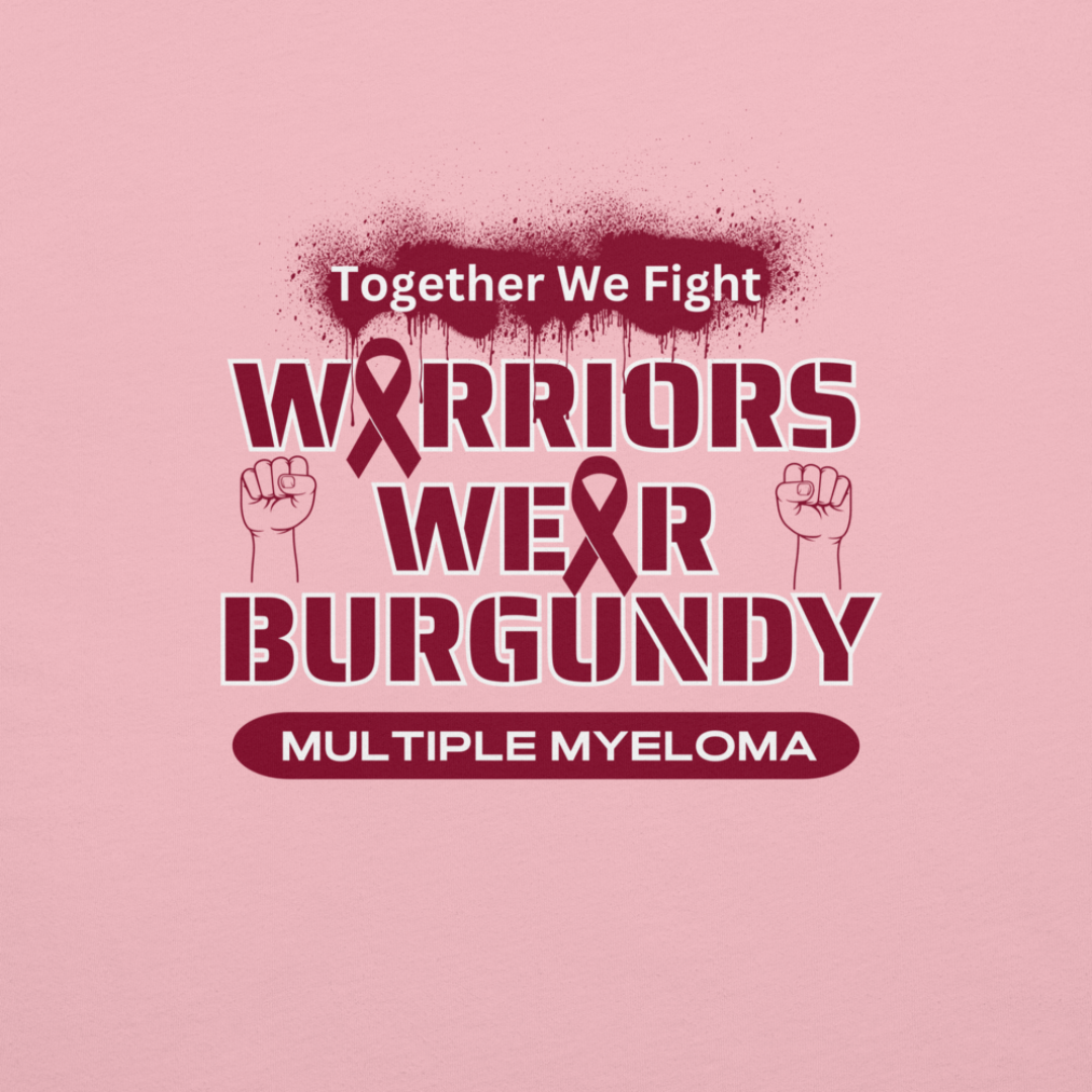 Show your support for myeloma warriors with our Warriors Wear Burgundy T-shirt! Made with 100% combed and ring-spun cotton, this shirt is not only comfortable but also supports a great cause. The pre-shrunk fabric ensures a perfect fit wash after wash. Profits from this shirt go towards myeloma research, so you can feel good about your purchase while spreading awareness. Join the fight against myeloma in style!
